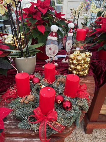 Jetzt wird’s festlich: Entdecken Sie unsere exklusiven Adventsgestecke und prachtvollen Weihnachtssterne – ideal, um Ihr Zuhause in warmen Glanz zu tauchen.